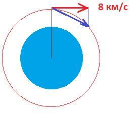 Со скоростью 8 км/с спутник должен лететь ПЕРПЕНДИКУЛЯРНО радиусу на Землю, что бы улетать от неё настолько сколько Земля его притягивает.