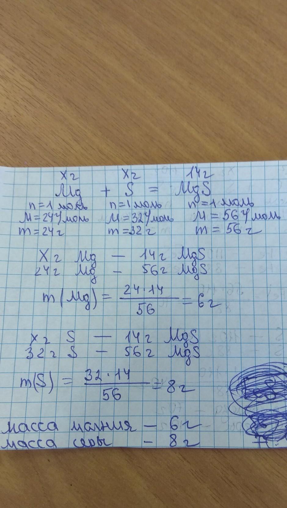 Ответ: масса магния — г, масса серы — г.