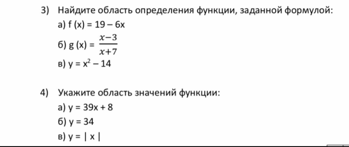 3) Найдите область определения функции, заданной формулой: a) f(x)=19-6x