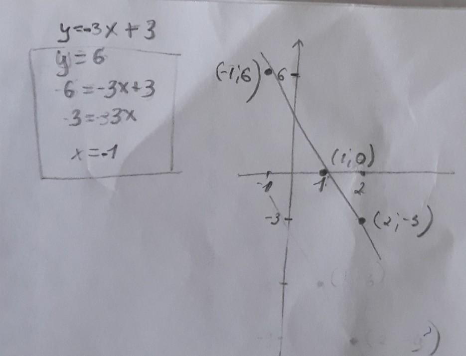 А) постройте график функции y=-3x+3. Б) укажите с помощью графика, при каком значении x ззначение y =6