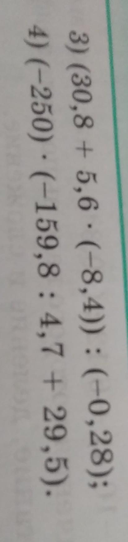 3) (30,8 + 5,6 * (-8,4)) : (-0,28) = (30,8 + (-47,04)) : (-0,28) = -16,24 : (-0,28) = 58