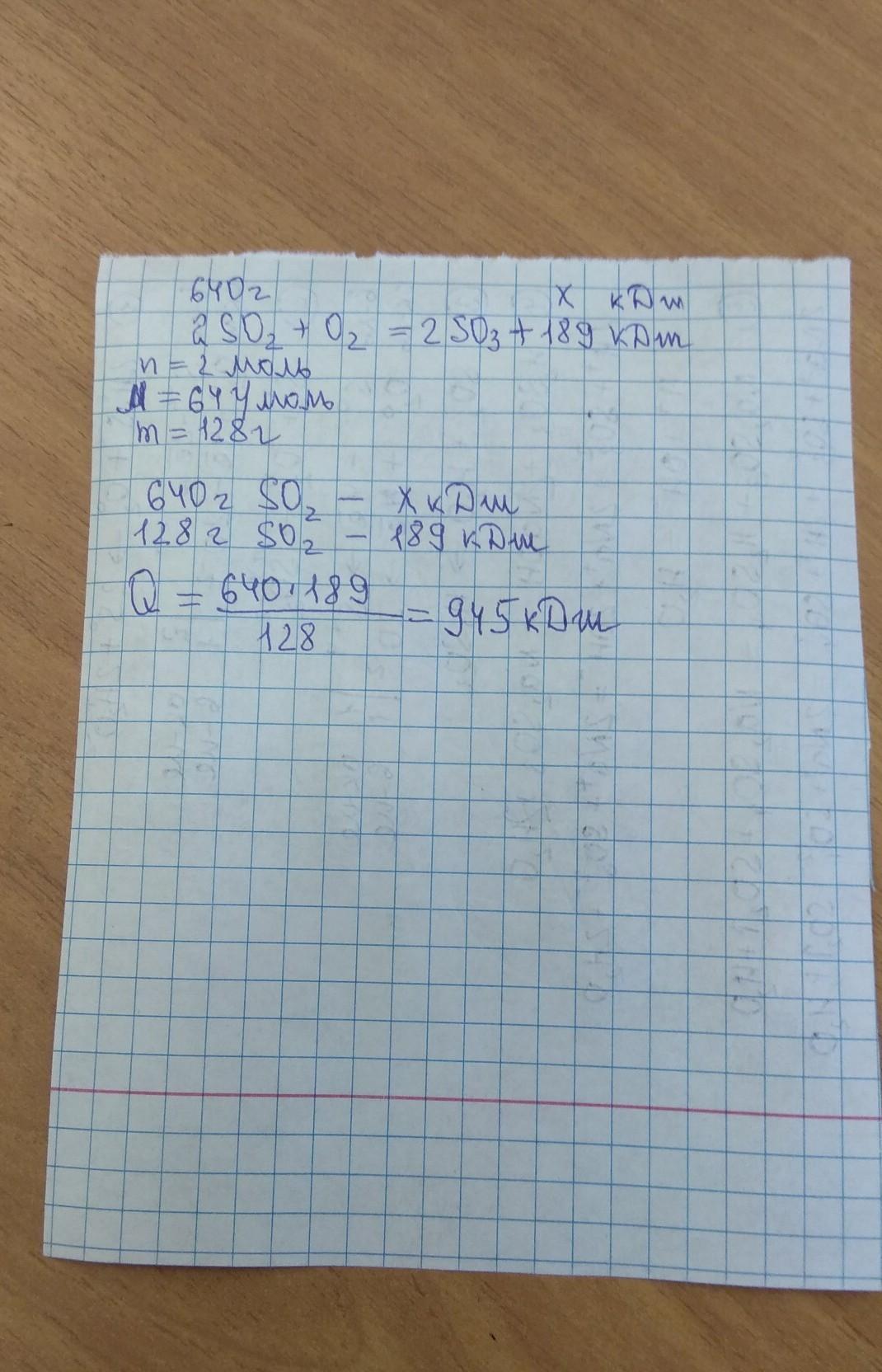 x = 189 кДж × 640 гр / 128 гр = 189 кДж × 5 = 945 кДж