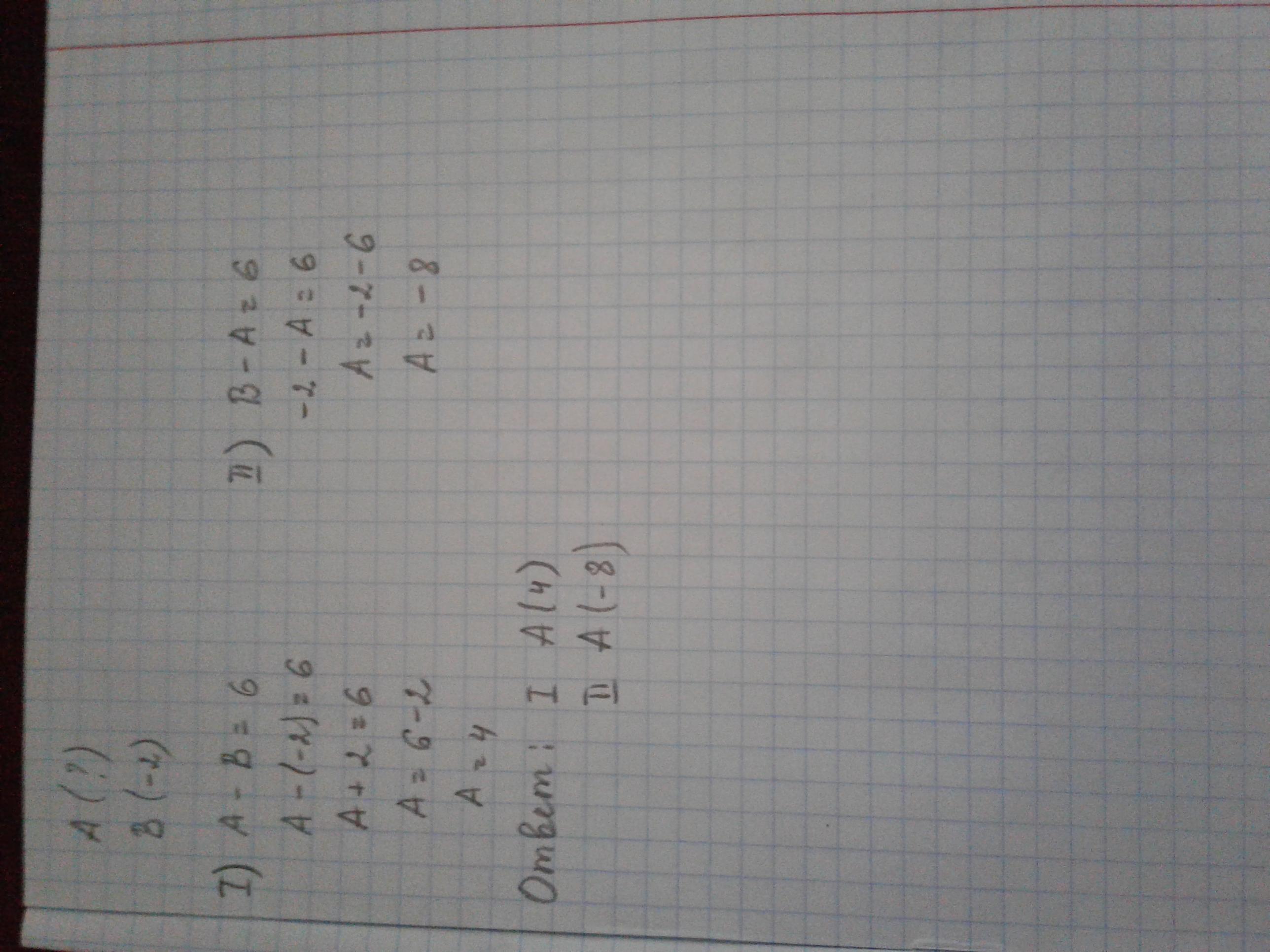 Так как все точки на координатной прямой находятся в одном ряду, то точка A может находится как слева так и справа от точки B. Соответственно 1-ое решение ( при точке A слева от точки B) :