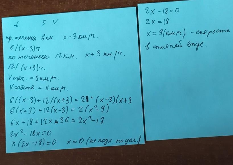 Лодка прошла 6 км против течения реки и 12 км по течению, потратив на весь путь 2 ч. Найдите скорость лодки в стоячей воде, если скорость течения реки составляет 3 км/ч.