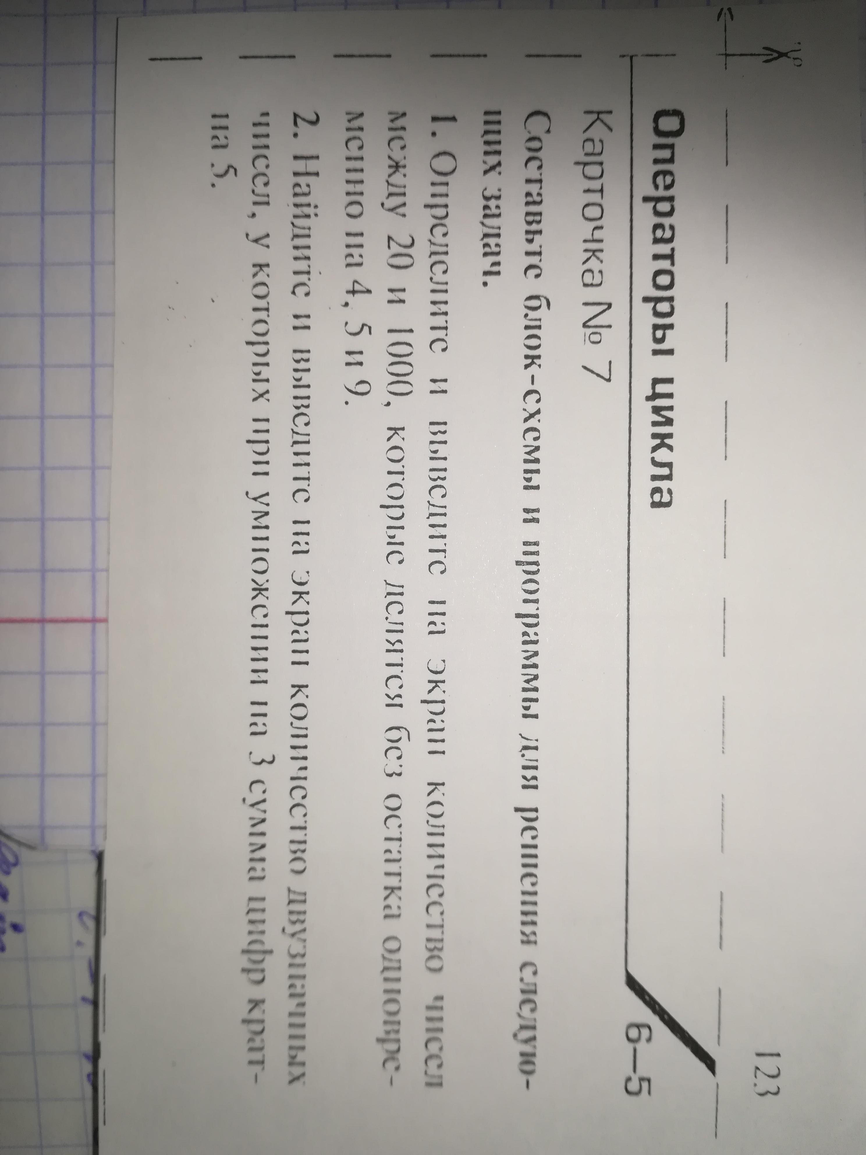 Операторы цикла. Карточка 7. Составьте блок-схемы и программы для решениея следующих задач.