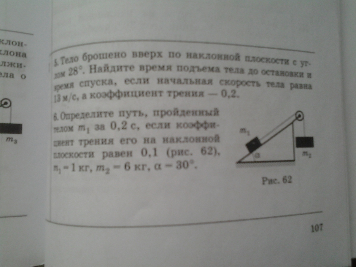 Определить путь, пройденный тело m1 за 0.2 с, если коэффициент трения равен 0.1. Массы тел равны соответственно m1=1 кг, m2=6 кг, а угол равен 30. Умоляю! Завтра контрольная!