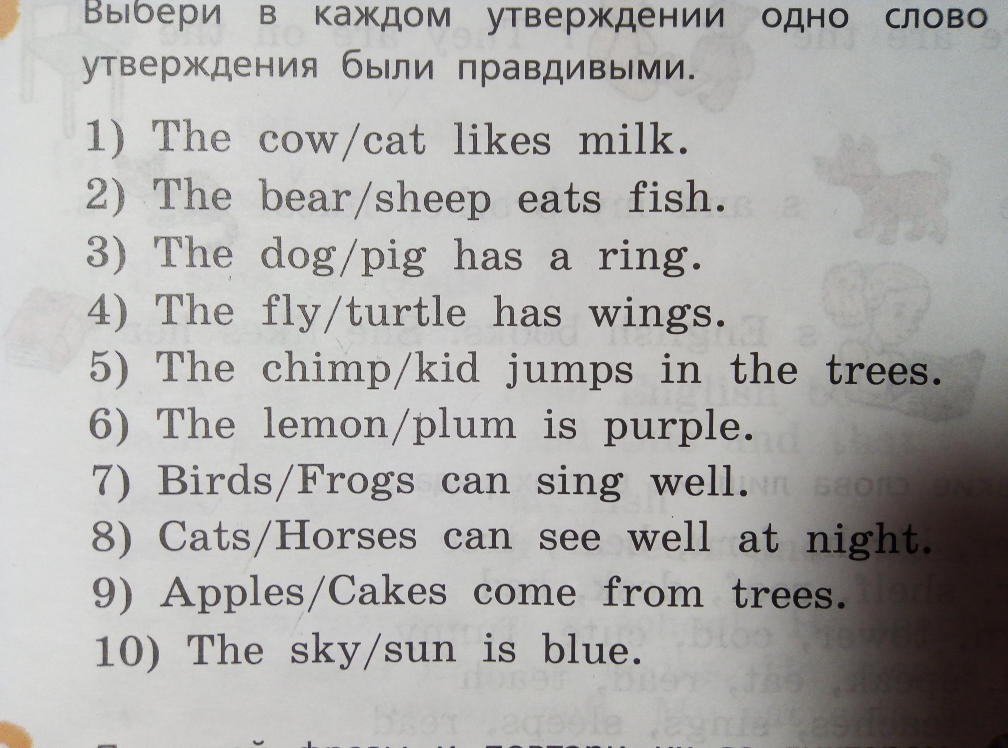 1) The cat likes milk.