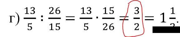 15÷5=3;26÷13=2 и так получилась дробь три вторых.