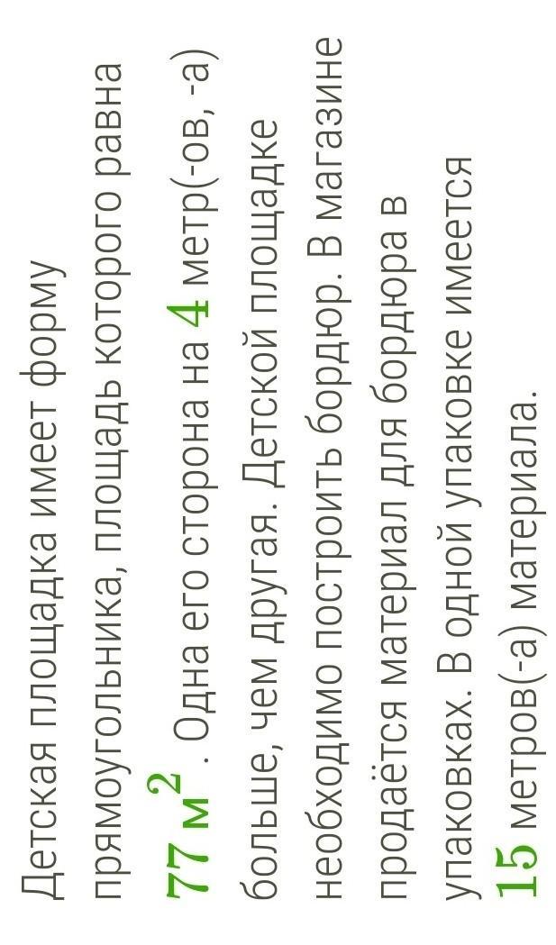 Необходимо найти длину, ширину детской площадки и скольку упаковок материала для бордюра нужно купить