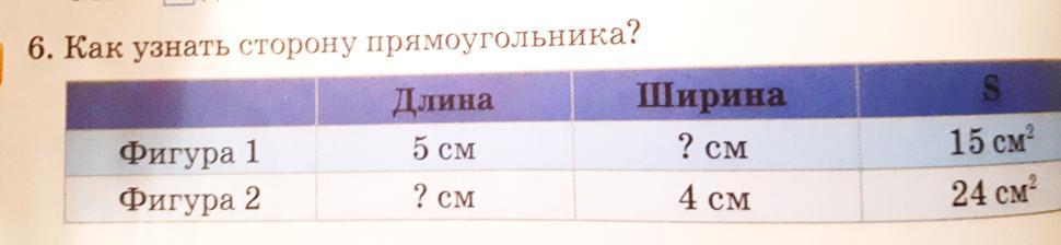 Для Фигуры 2 ширина b = 4 см и площадь S = 24 см², то длину a находим так: