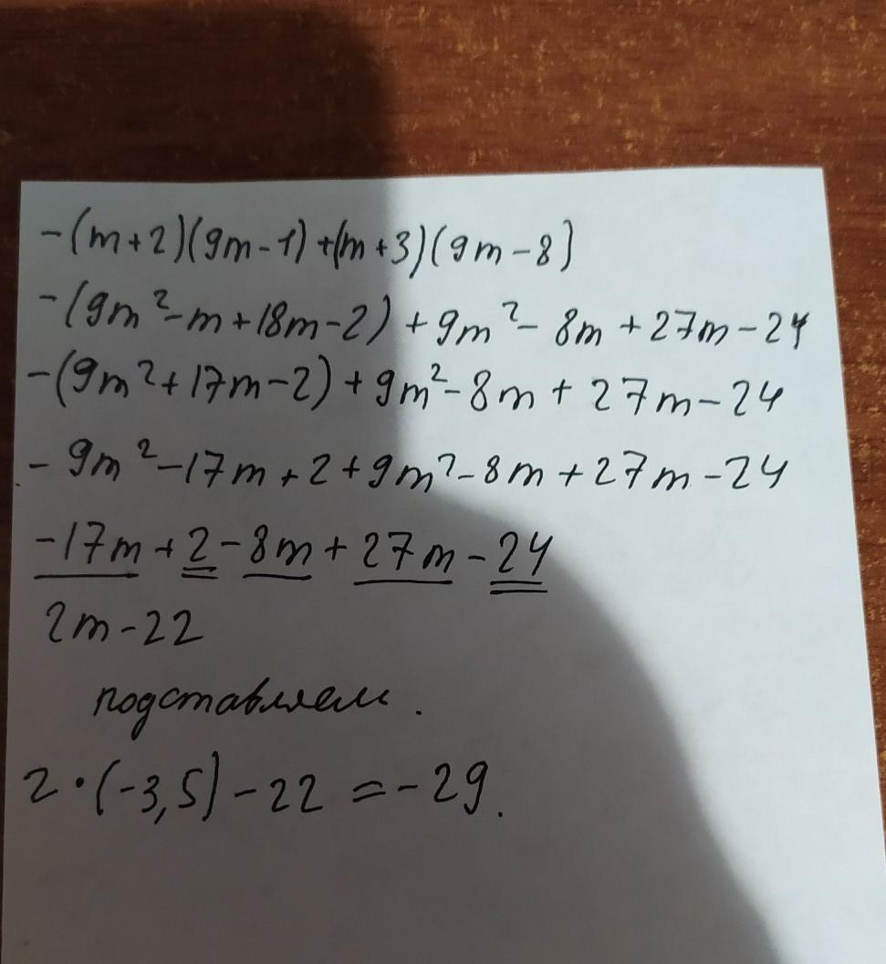 -(9m²-m+18m-2)+(9m²-8m+27m-24)=