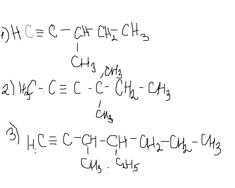 составьте структурные формулы следующих алкинов: а) 3_метилпентина-1 б)4,4-диметилгексина-2, в) 3метил-5-этилгептина-1