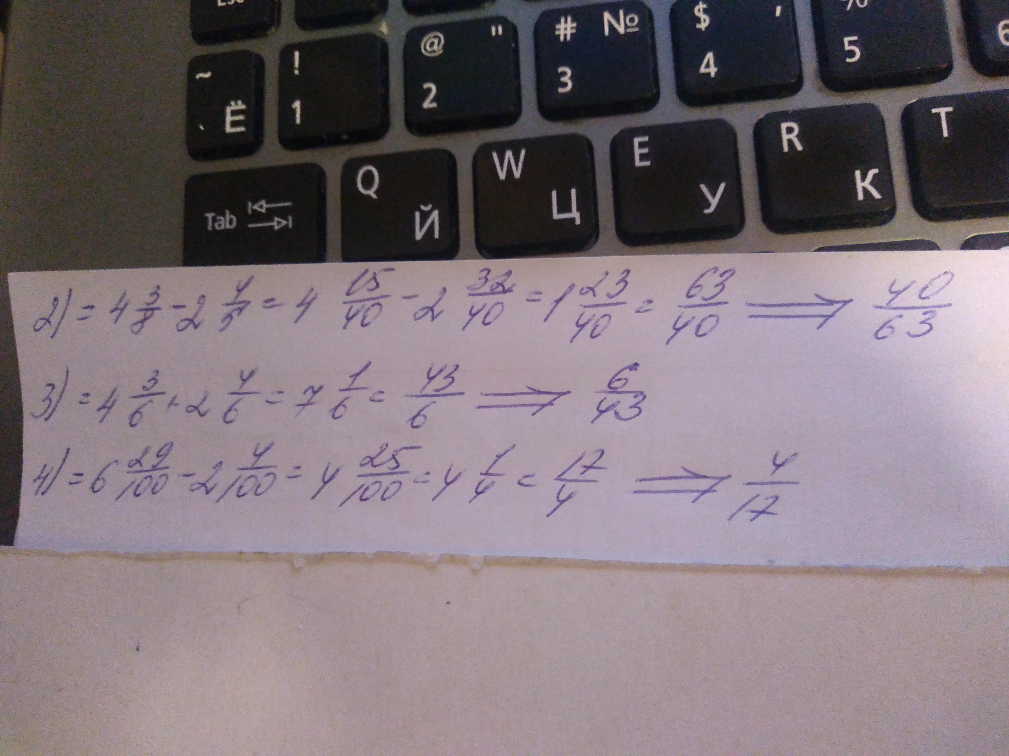 4) 6,29 - 2,04 = 4,25 = 4 1/4 = 17/4