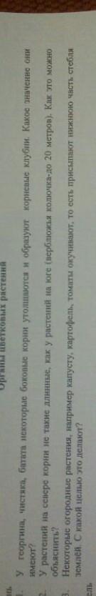 Ответ:Утолщённые корни несут запасательную функцию, в них содержится большое количество питательных веществ. Южные растения, растущие в пустынях, типа верблюжьей колючки, благодаря длинным корням, получают влагу глубоко из-под земли, т.к. из-за жары вода из верхнего слоя почвы испаряется. Определённые огородные растения типа картофеля окучивают, чтобы у них появились придаточные корни. Также эта процедура делает землю более рыхлой и воздушной.
