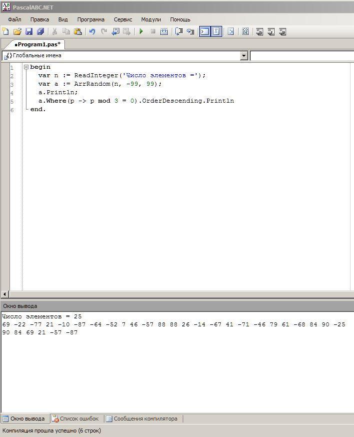 a.Where(p -> p mod 3 = 0).OrderDescending.Println