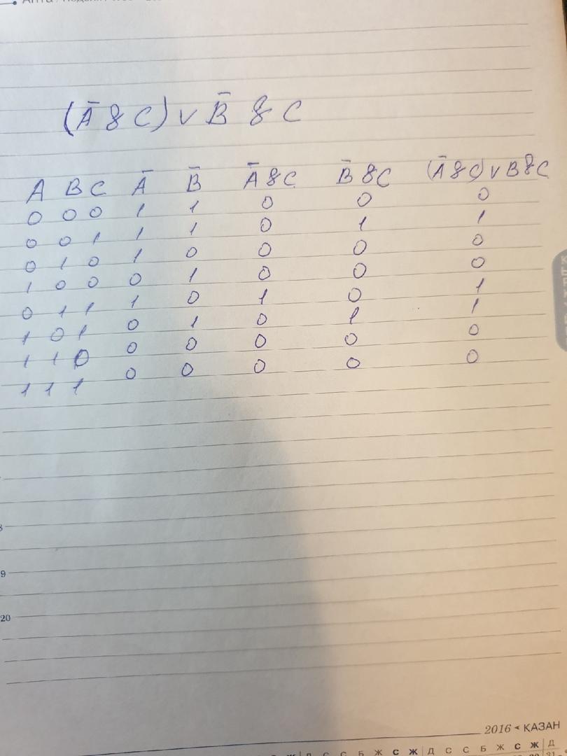 ты перебираешь варианты в двоичном виде для A B C, а после делаешь различные виды функций(сложение, умножение, инверсия) с каждым вариантом