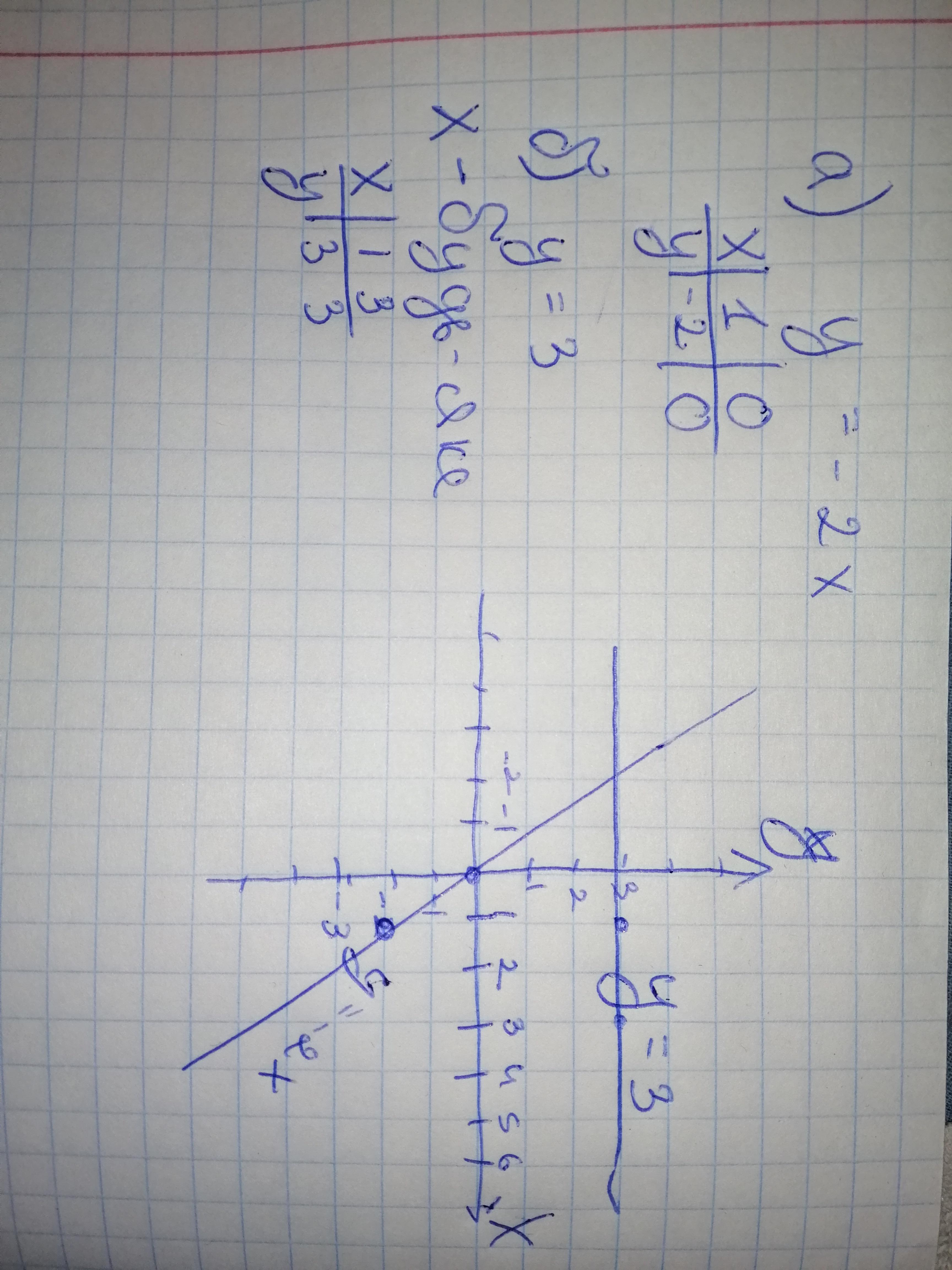 Это является решением а) припустим х=1 тогда у=-2×1=-2 если х=0 то у=0 б) у=3 х - любоя точка