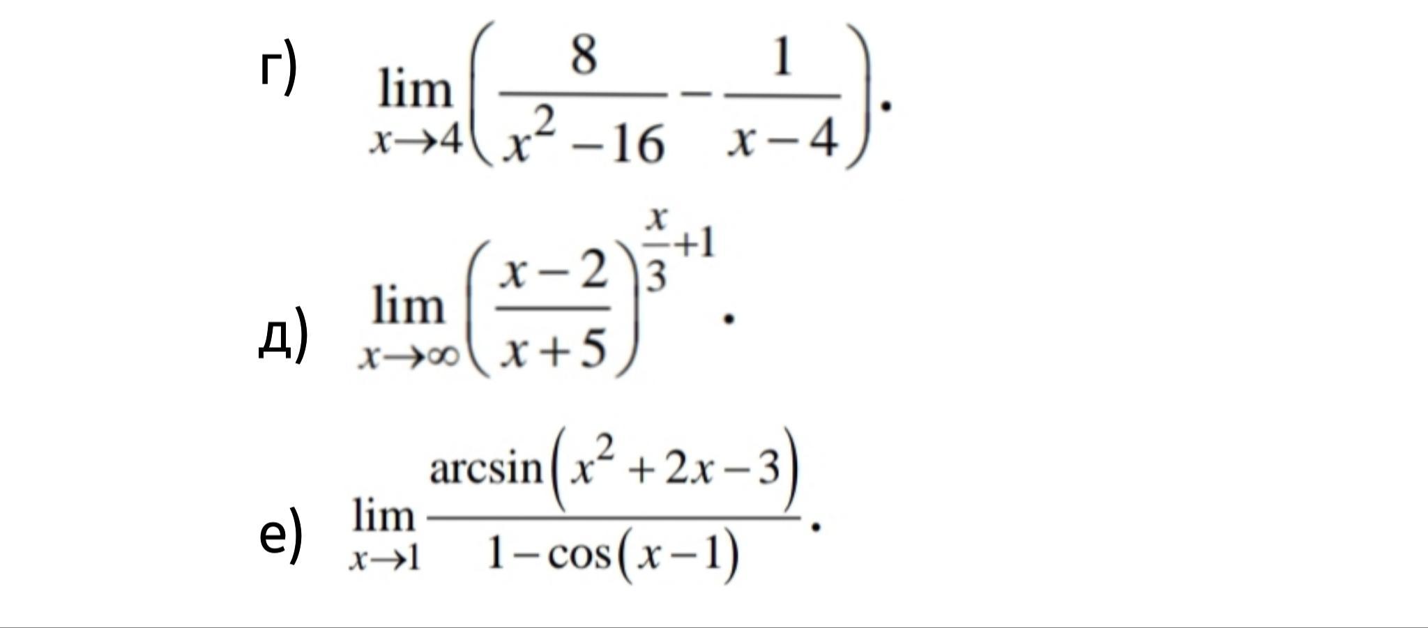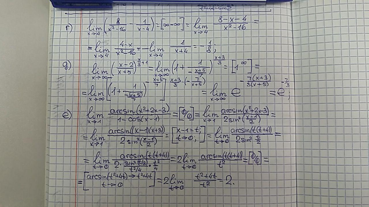 Рассмотрите предложенный вариант, в задании "е" использовалась замечательная эквивалентность.