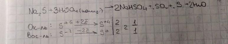 Na2S + H2SO4(конц.) → NaHSO4 + SO2 + S + H2O