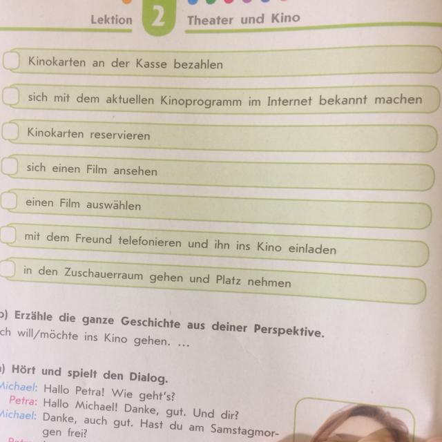 2. mit dem Freund telefonieren und ihn ins Kino einladen (позвонить дургу и пригласить его в кино)