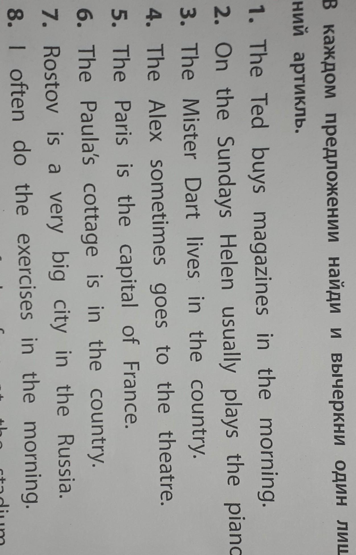 1. первое the лишнее
