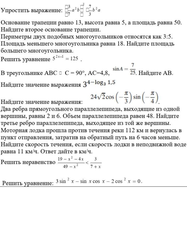 2.) Основание трапеции равно 13, высота равна 5, а площадь равна 50. Найдите второе основание трапеции.