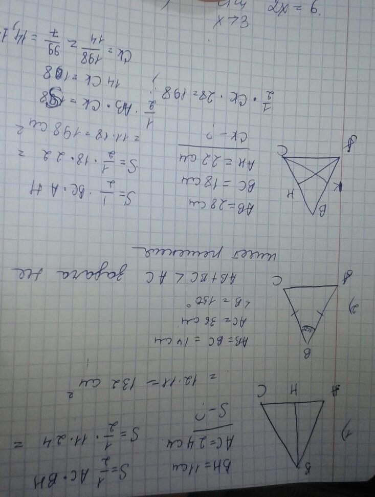 2) основание 14, боковые по 36, угол 150 тогда быть не может...