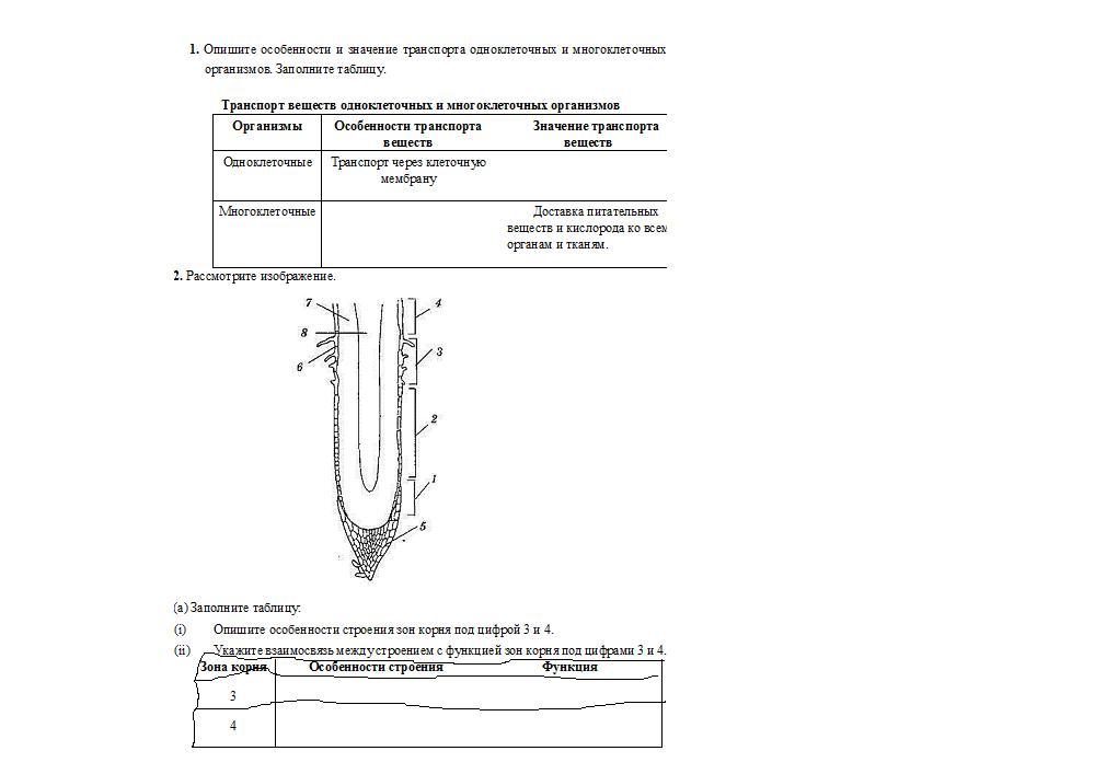 1. Опишите особенности и значение транспорта одноклеточных и многоклеточных организмов. Заполните таблицу.