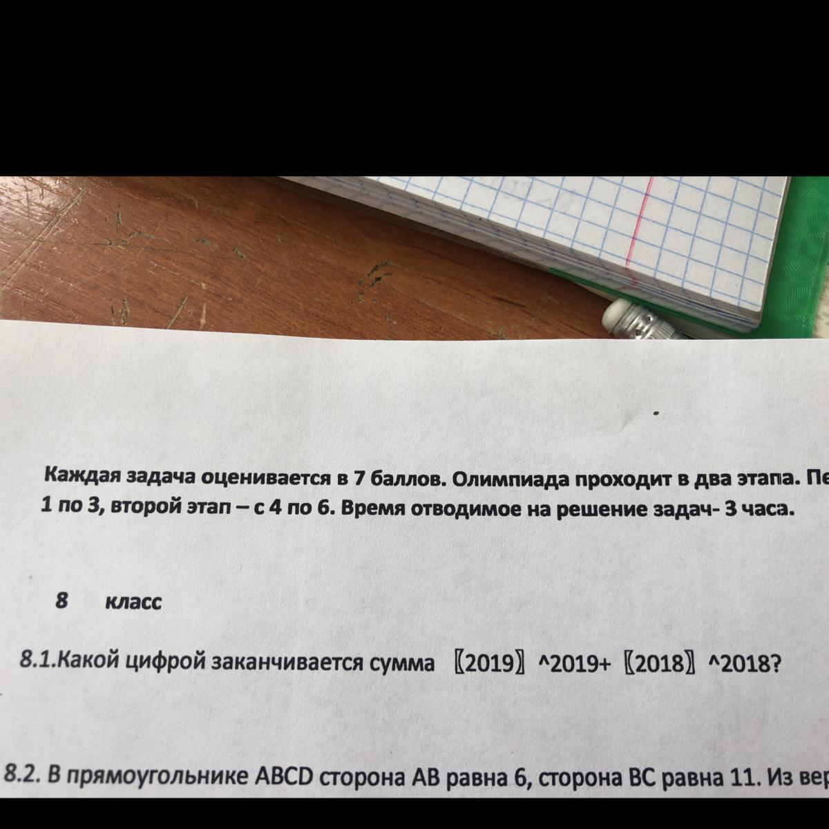 Цифра 8 в конце выражения появится, если степень числа кратна 5 или равна 1, цифра 4, если степень кратна 2, цифра 2, если степень кратна 3, цифра 6, если степень кратна 4.