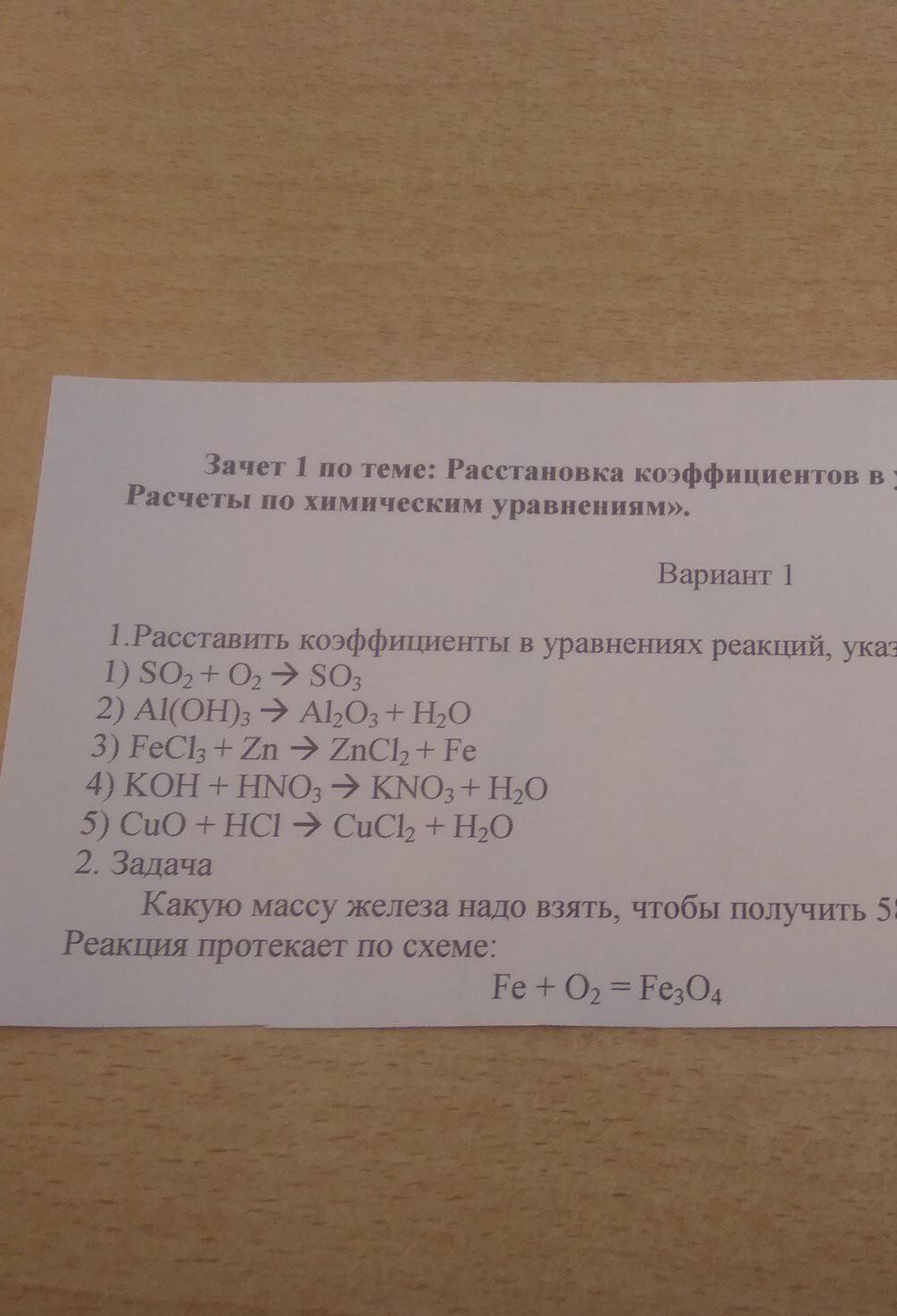 зачёт 1 по теме расстановка коэффициентов в уровнениях реакций. расчеты по химическим уровнениям