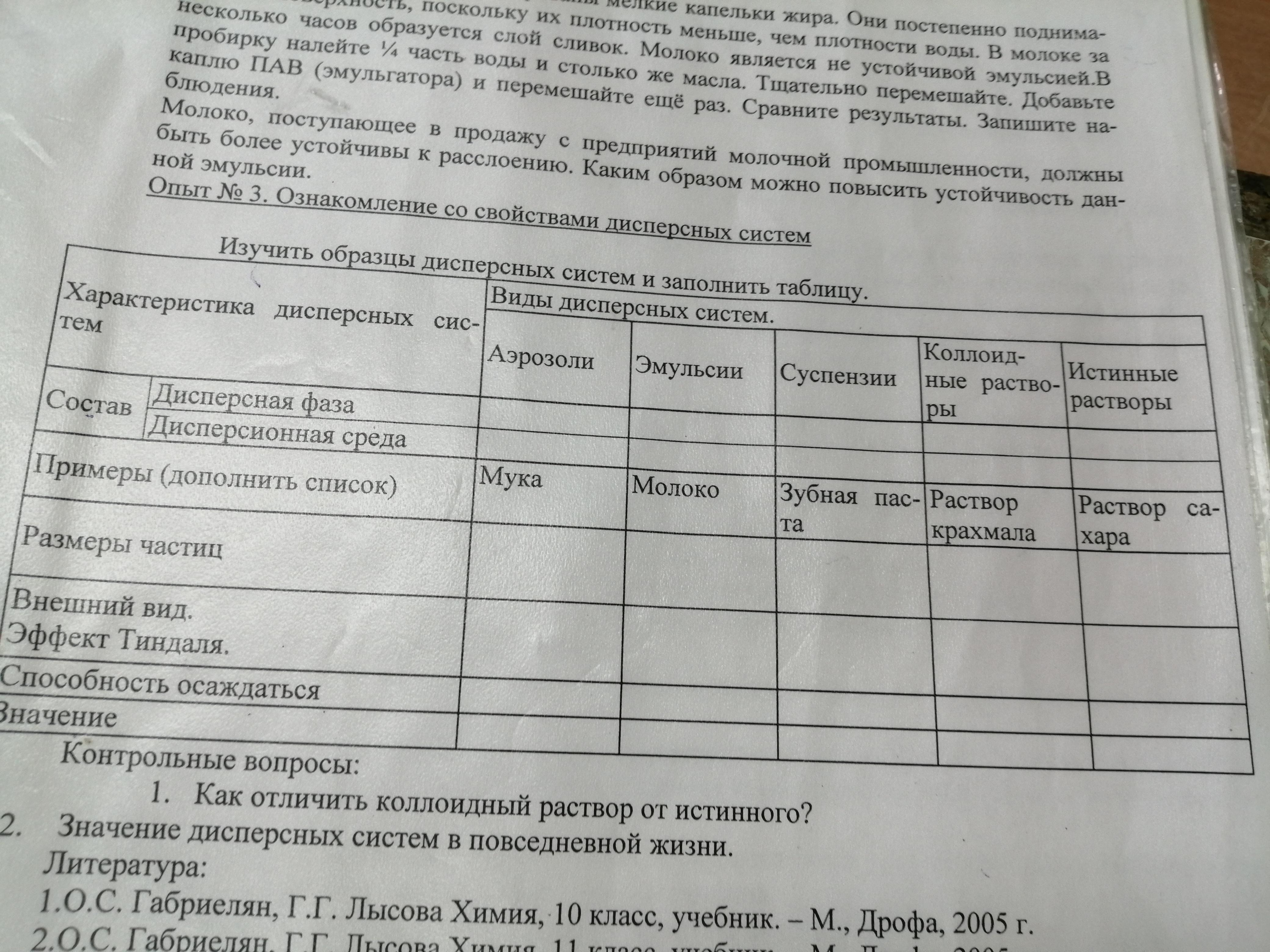 В нём капли молочного жира распределены в водной среде. Эмульсии относятся обычно к грубодисперсным системам, поскольку капельки дисперсной фазы имеют размеры от 1 до 50 мкм. Эмульсии низкой концентрации — неструктурированные жидкости.(дисперсионная среда)