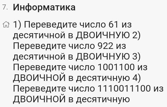 1⁶0⁵0⁴1³1²0¹0⁰₂ = 0 * 2⁰ + 0 * 2¹ + 1 * 2² + 1 * 2³ + 0 * 2⁴ + 0 * 2⁵ + 1 * 2⁶ = 0 + 0 + 4 + 8 + 0 + 0 + 64 = 76₁₀