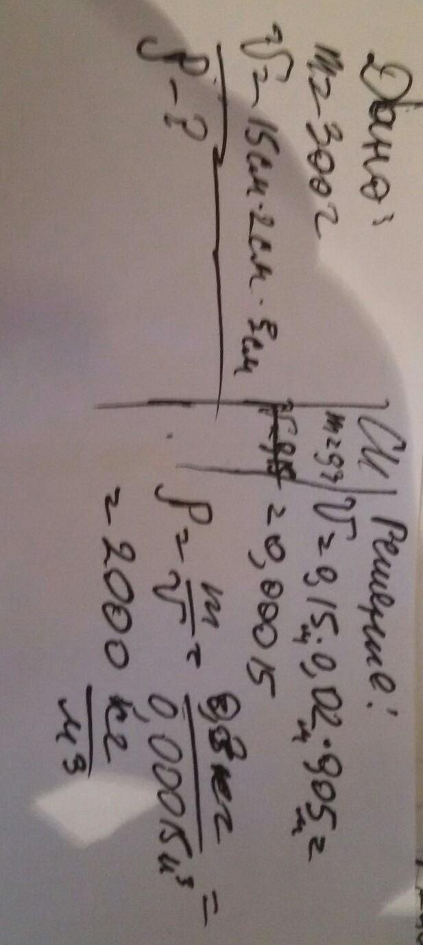 p=m/V=0,3/0,15*0,05*0,02=2000 кг/м3