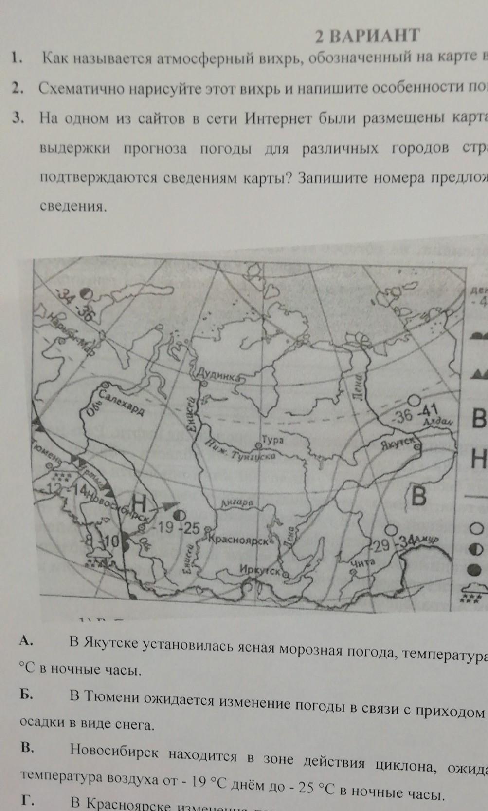 Как называется атмосферный Вихрь, обозначенный на карте в районе города Якутск? Срочно. География. 8 класс.