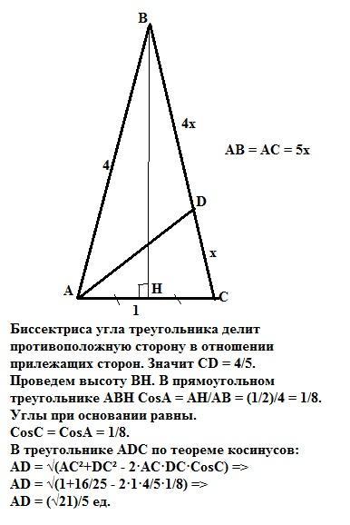 То есть BD/DC = 4/1. ВС =АВ = 4 ед.
