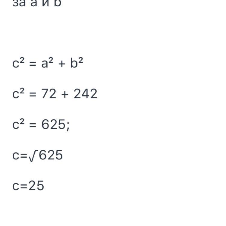 Катеты прямоугольного треугольника равны 7 см и 24 см.