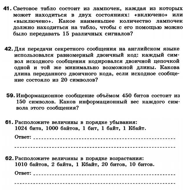 41. 3-х лампочек не хватает, чтобы передать 15 сигналов, а четырех хватает