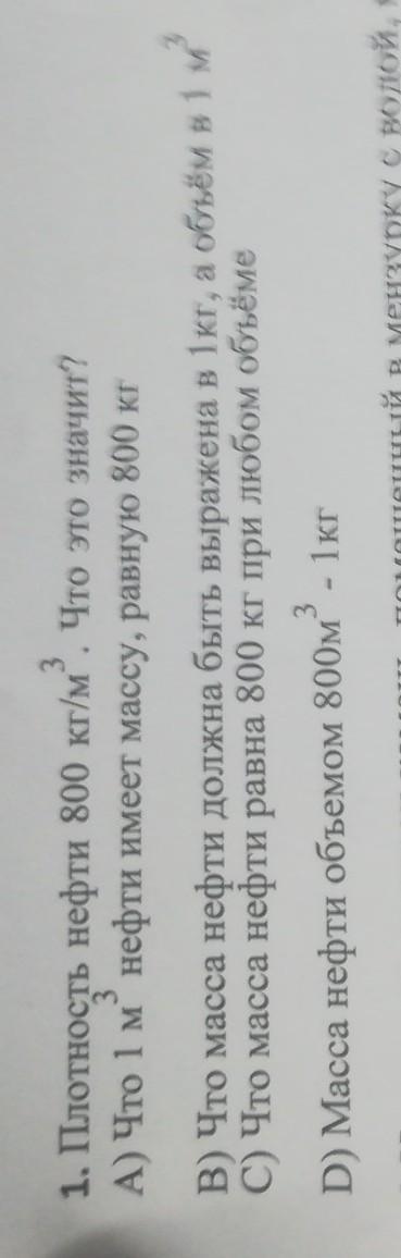 Плотность нефти 800 кг/м³, это значит, что если взять 1 м³ нефти, то ее масса будет 800 кг. А)