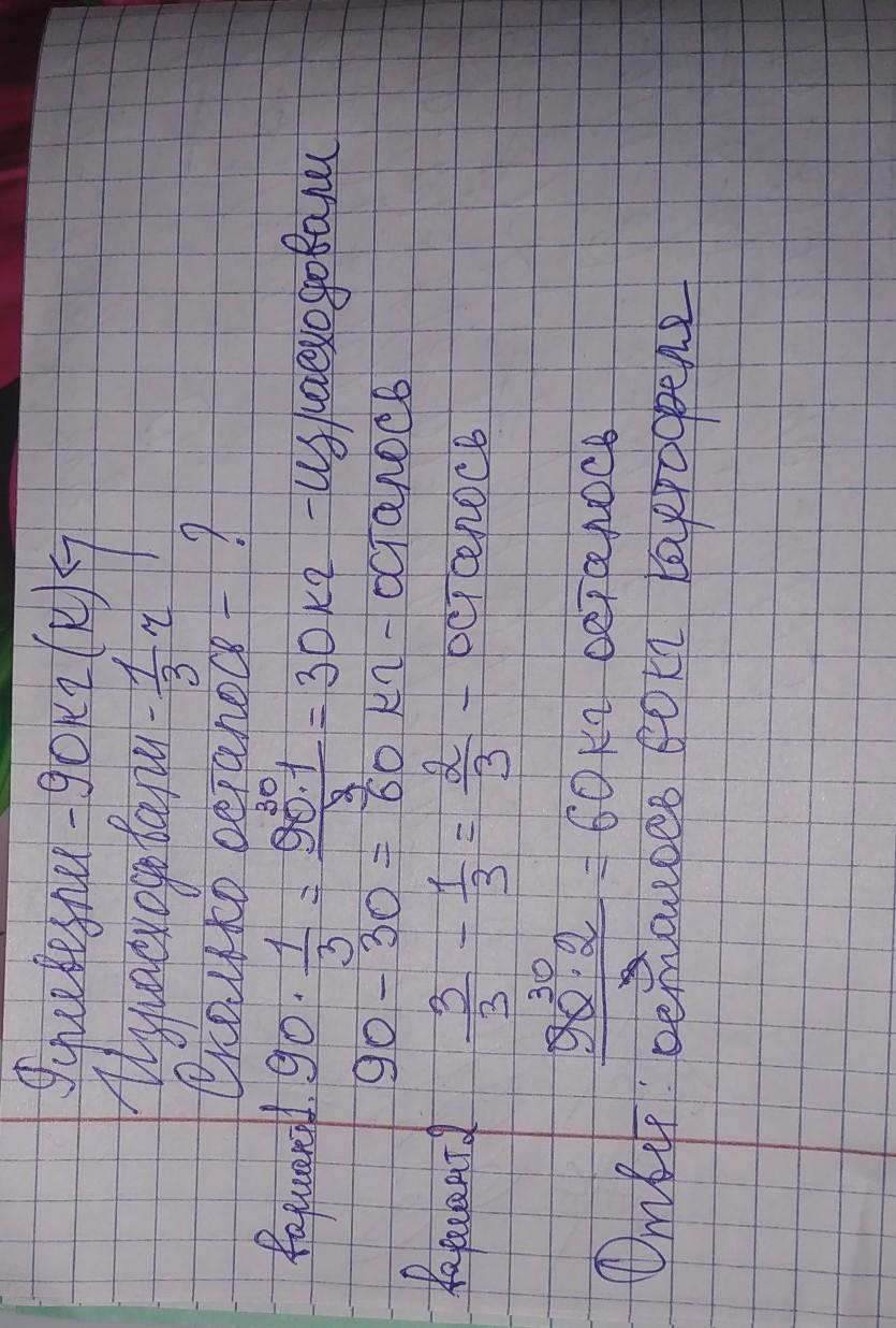 составить условие и выражение к задаче:привезли 90 кг картофеля, израсходовали 1|3 часть, сколько осталось?
