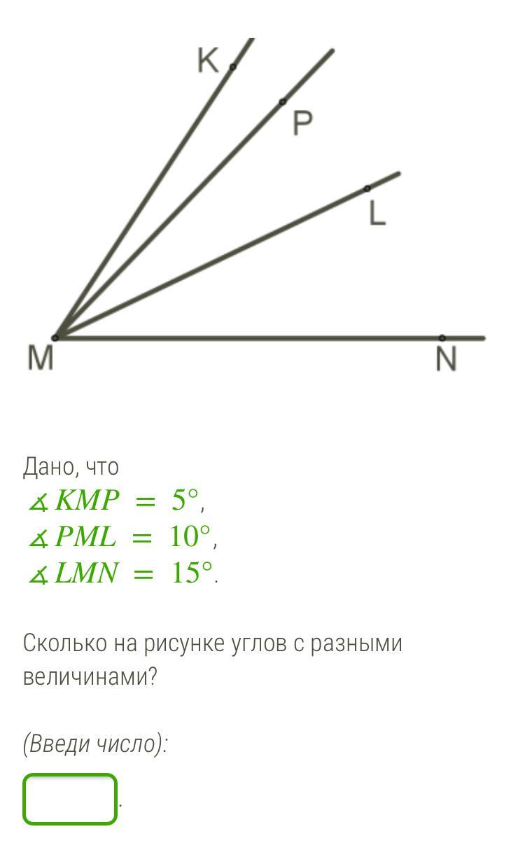 Пошаговое объяснение:∠KMP,∠LMP,∠LMN,∠PMN