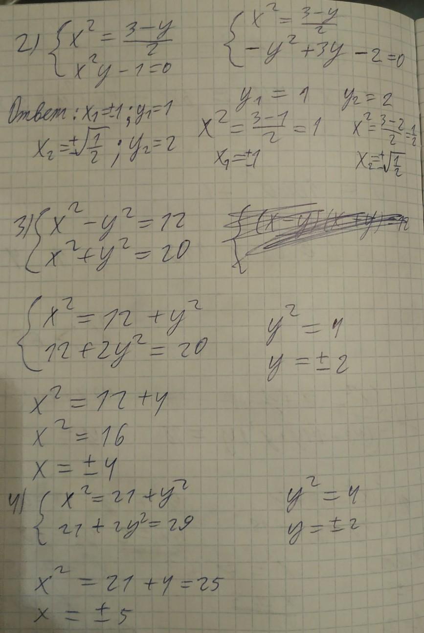 2)x=±1 y=1 или x=±√0.5 а y=2