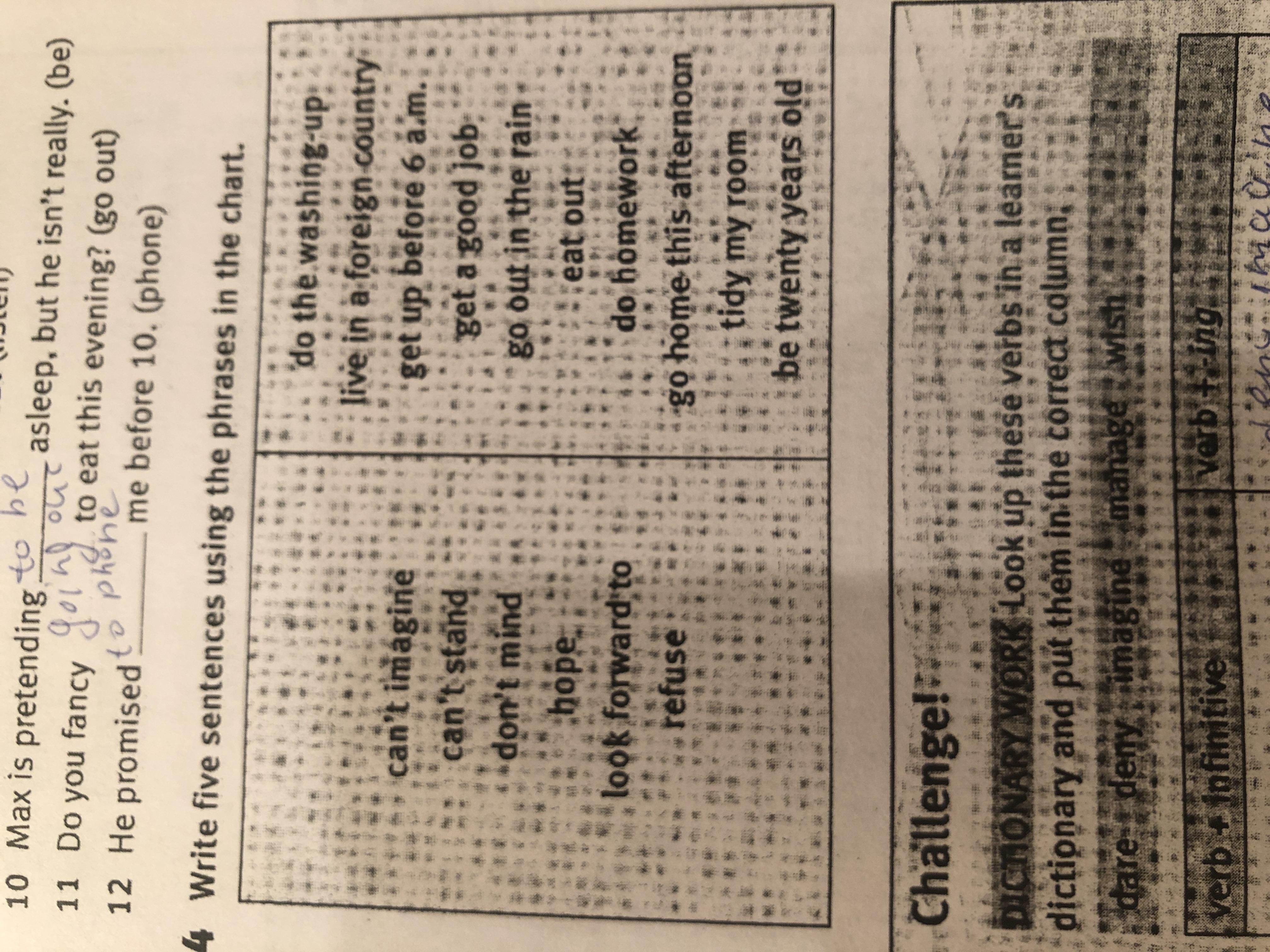 Задание. Напиши пять предложений, используя фразы в таблице.