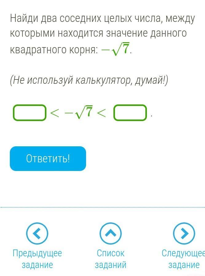 Ответ: (-3) < (-√7) < (-2).