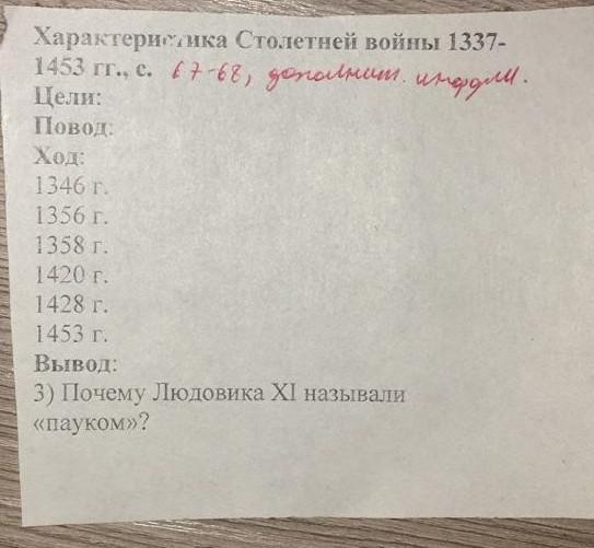 3)Ответ: Людовик свёл политику к интригам, в чем очень преуспел. Вообще, у него были благие намерения - объединение Франции и борьба с самостоятельностью крупных феодалов, но само прозвище он получил за свою хитрость, коварство и интриги.