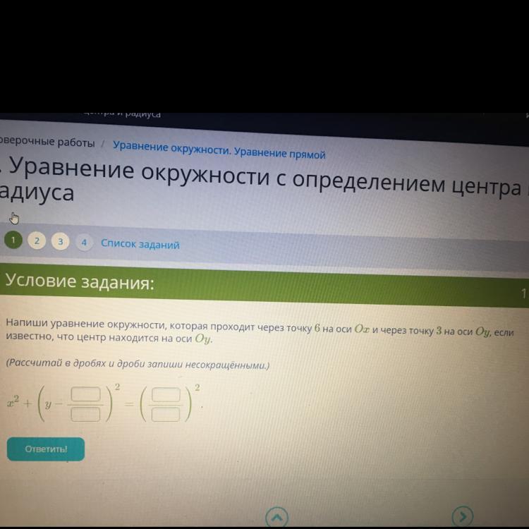 R=|OB|=|y0-3|=| -27/6-3|= 27/6+18/6=45/6 (по условию задачи дроби не сократим!).