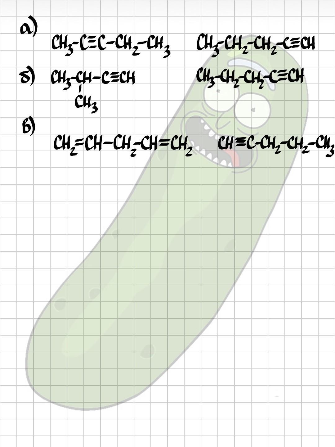1. На примере пятого члена гомологического ряда алкинов составьте структурные формулы двух изомеров, отличающихся: