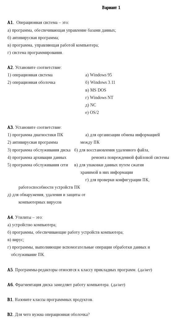 в1 - системное программное обеспечение , пакет прикладных программ , не помню