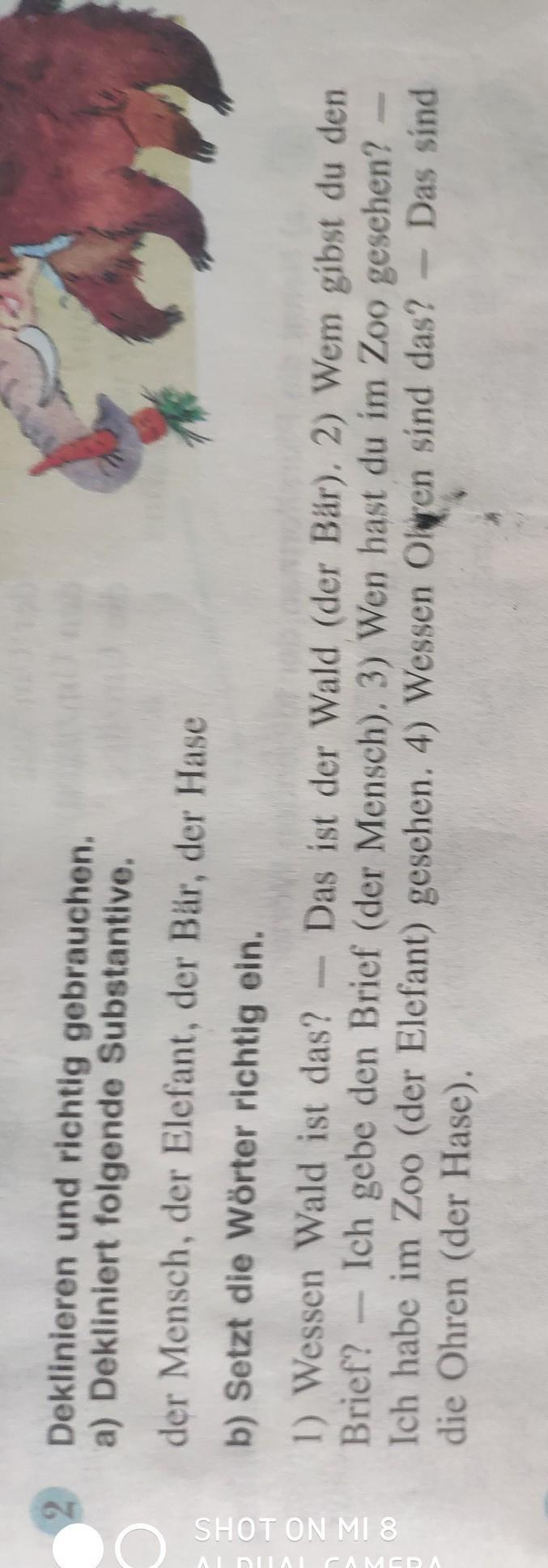 Dativ: dem Menschen, dem Elefanten, dem Bären, dem Hasen