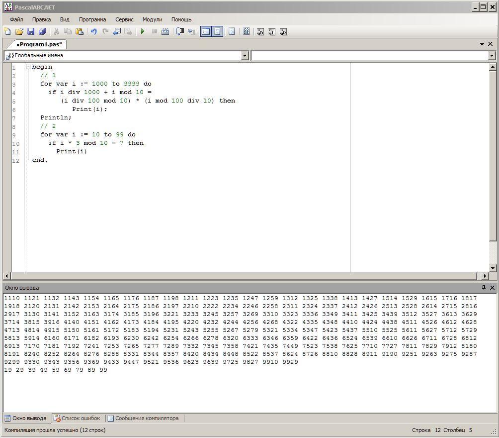 1.Вывести на экран все четырехзначные целые числа, у которых произведение десятков и сотен равно сумме единиц и тысяч.