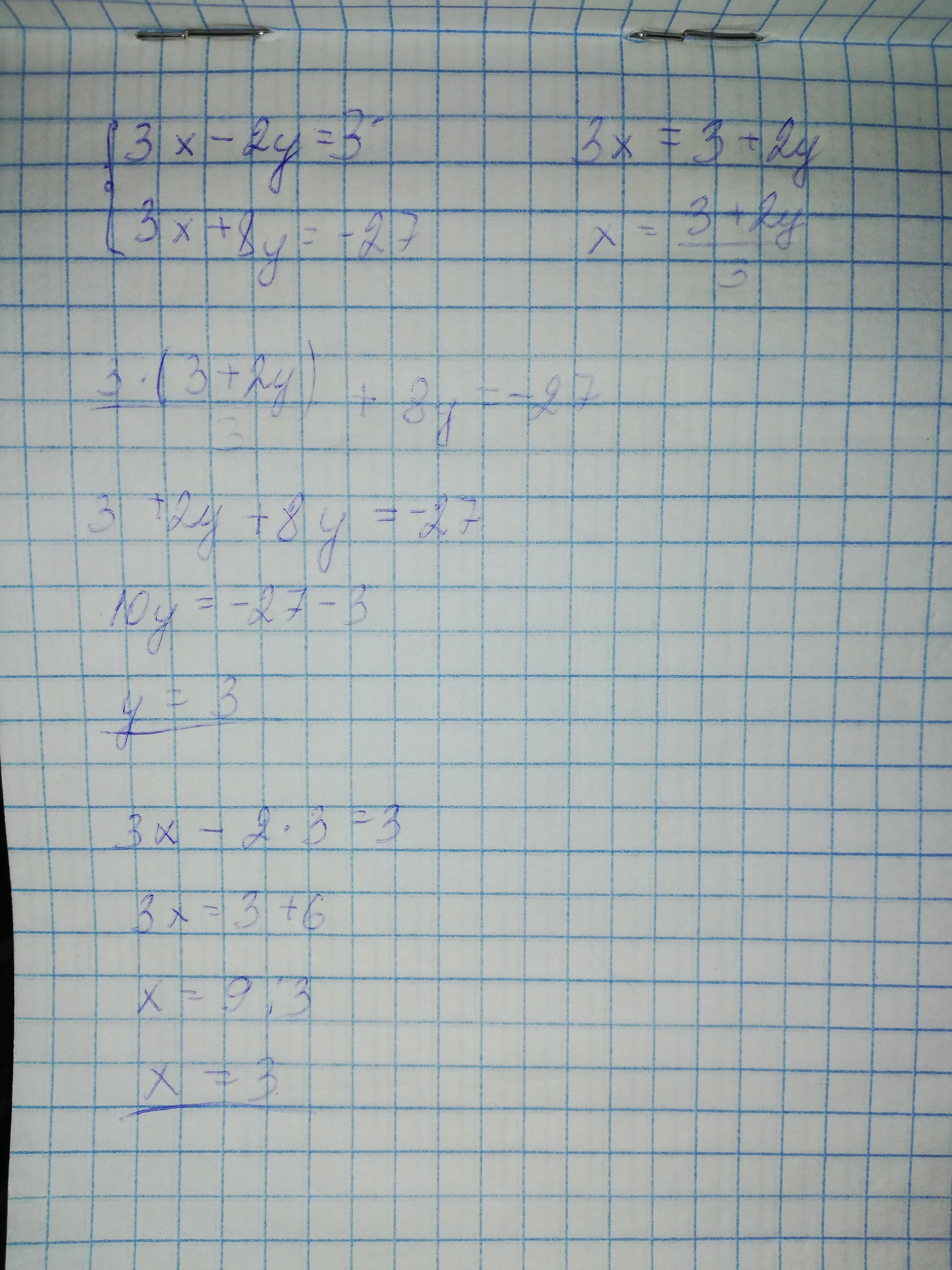 Ответ:выражаем одну переменную через другую. Поставляем во второе уравнение.